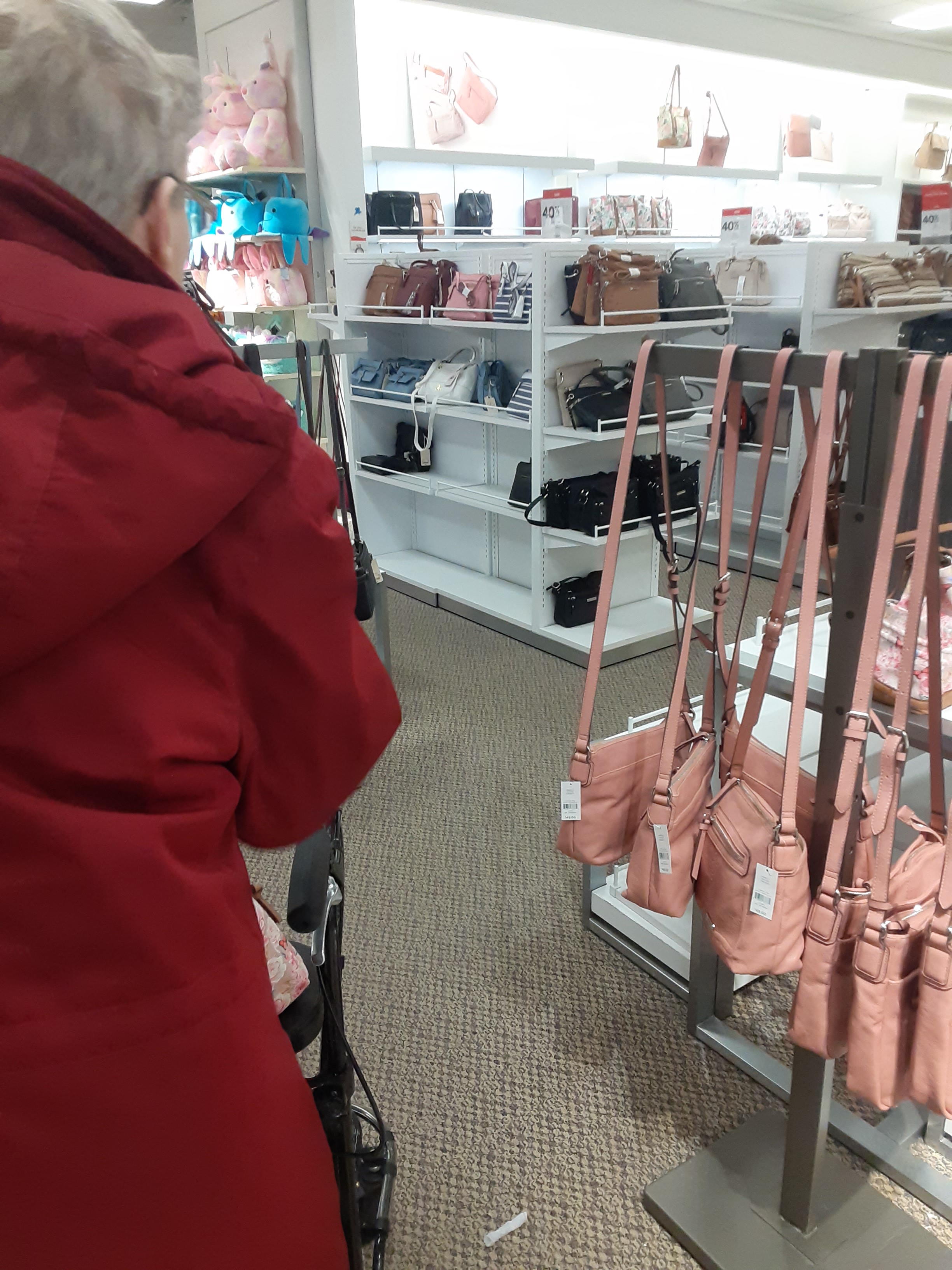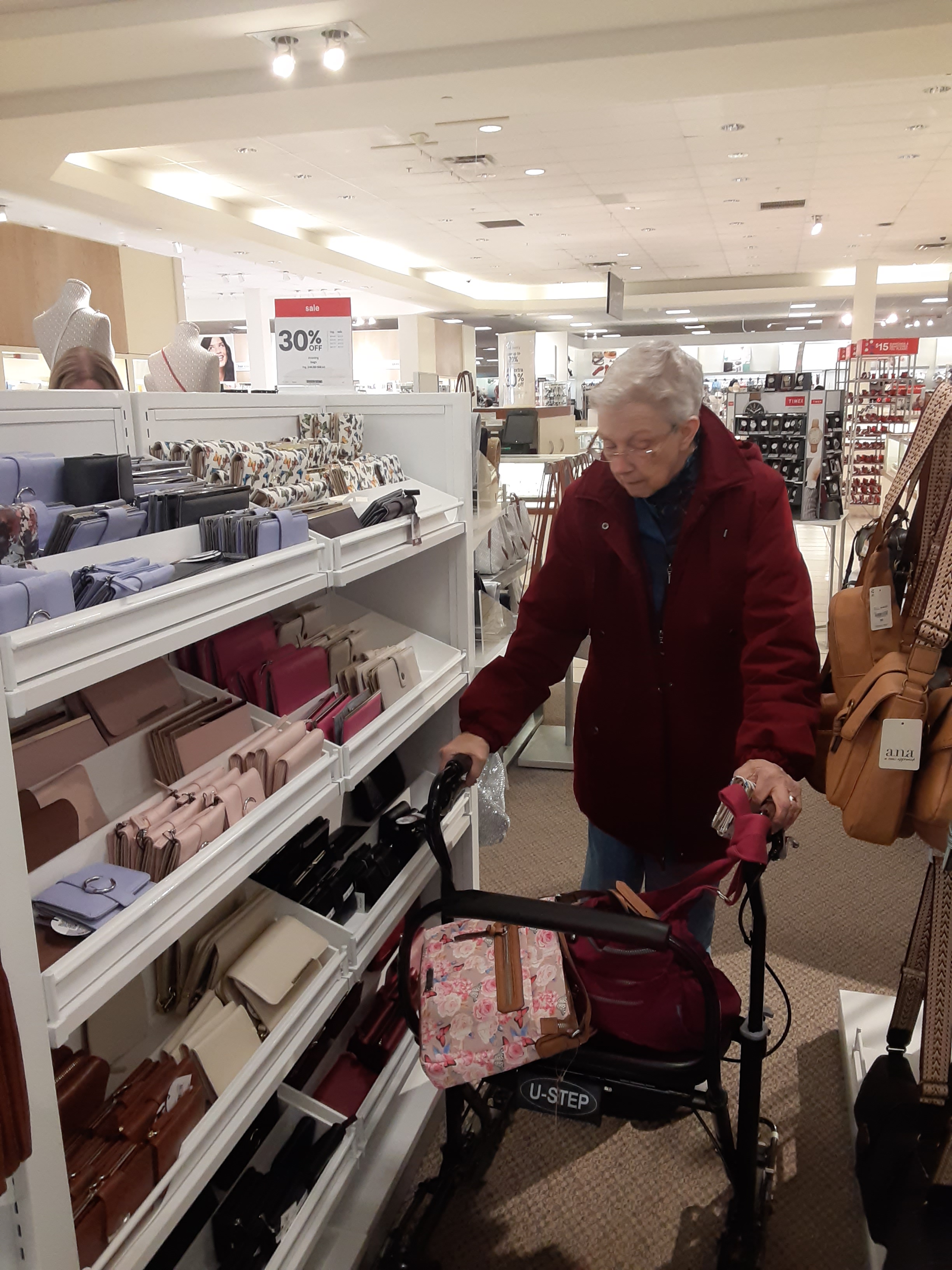 She found a purse and looked at wallets but none were satisfactory. Or maybe I was an ache in the posterior. She told me she never gets to go shopping very much anymore. She is right. I probably also help guide her maybe more than I should.
