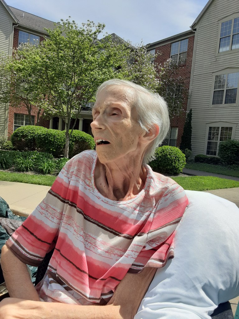 Yesterday was a busy day for you. The Hospice aide came to give you a bath, I came after lunch and we went outside to the garden to sit in the sun, Allison came to do your hair ( it looks good) and Mike came late afternoon to check your vitals and see how you are doing. You were busy with lots of stuff.