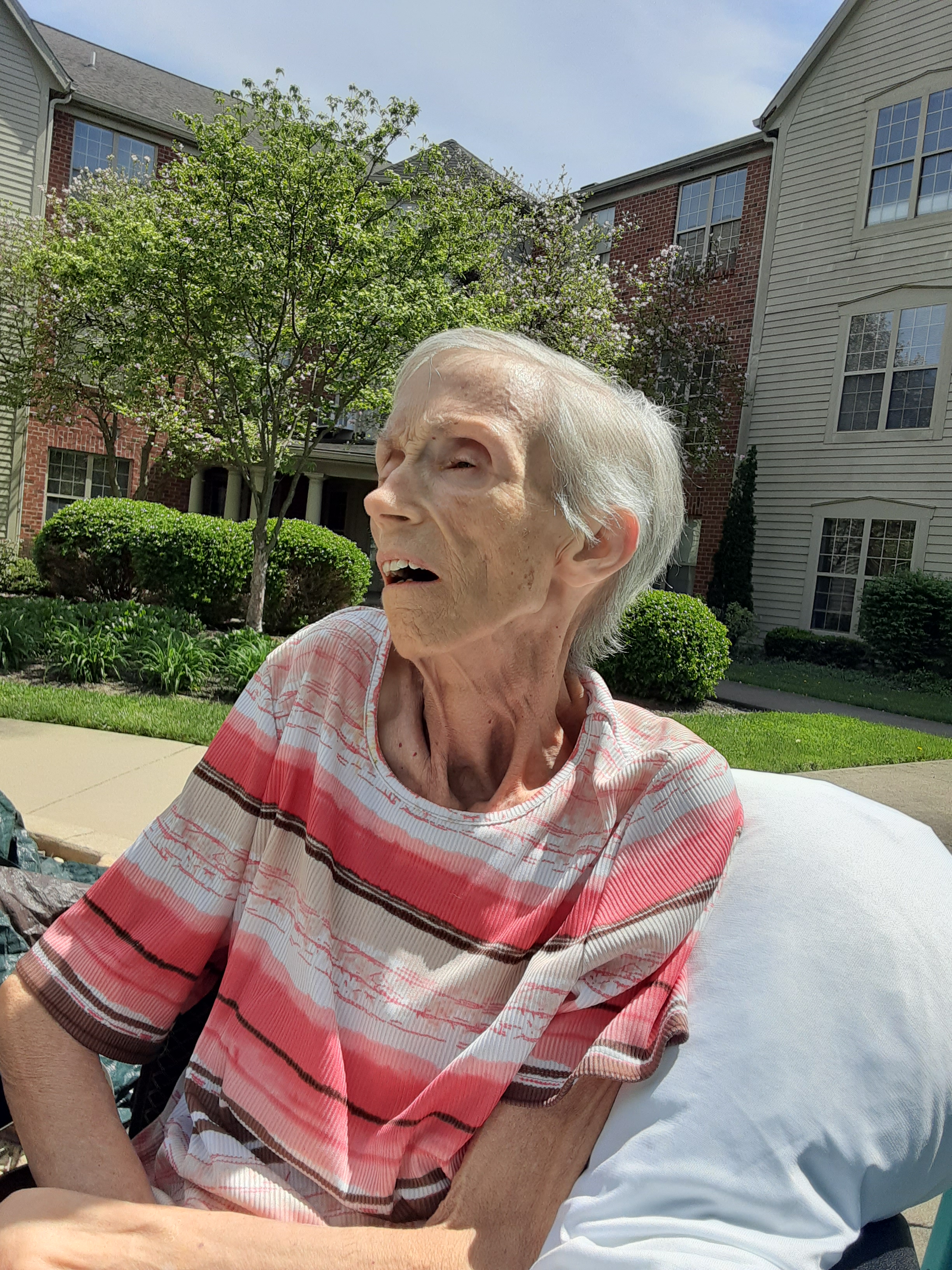 On Monday I was a little stiff and wearing an old set of eyeglasses. I could see okay but not comfortable driving with my new neck apparel. Your sister, Nancy, offered to drive me over to Bridgeway Pointe so that is what happened on Monday, bloody Monday. About every other day of that week you were sleeping when I came and Nancy gave me a ride to visit another day and we rode you around the building that day. You were more alert and Nancy seemed pleased to do it.