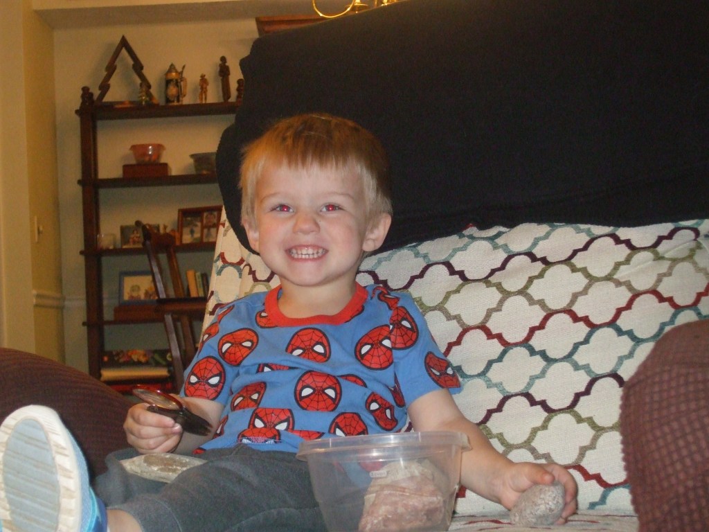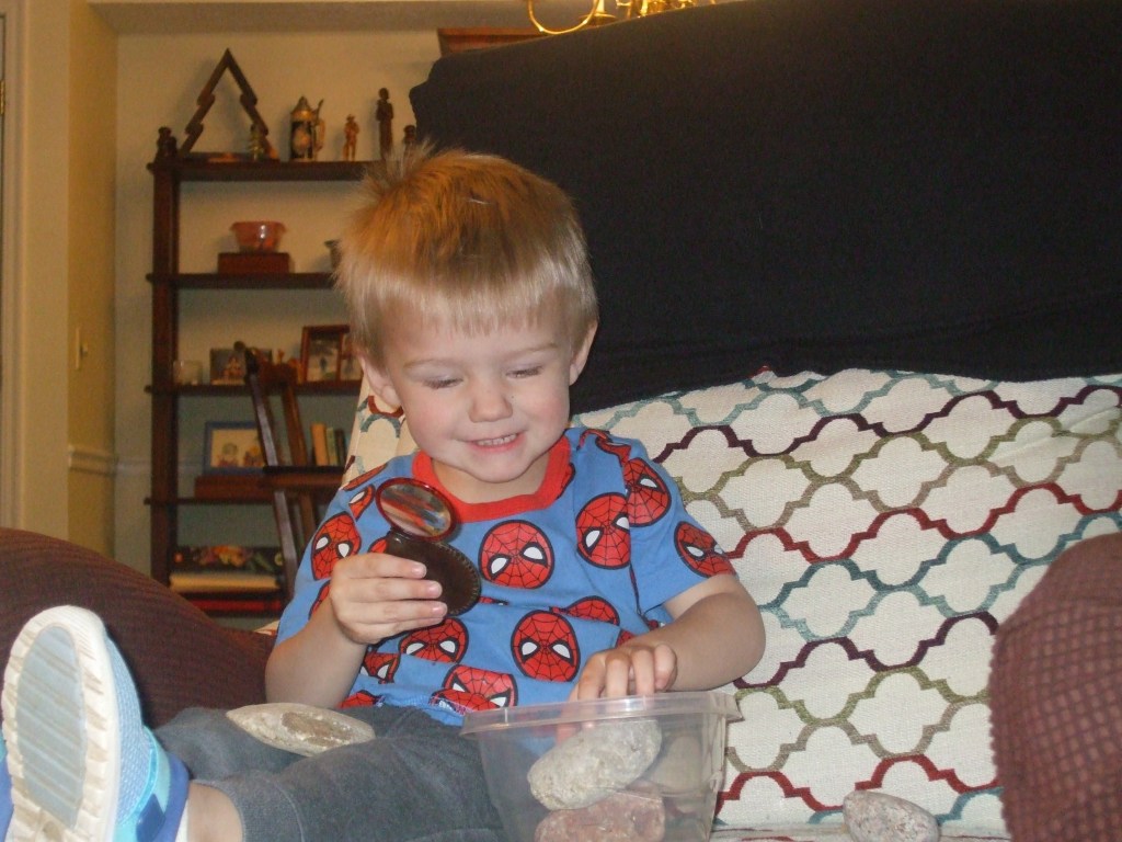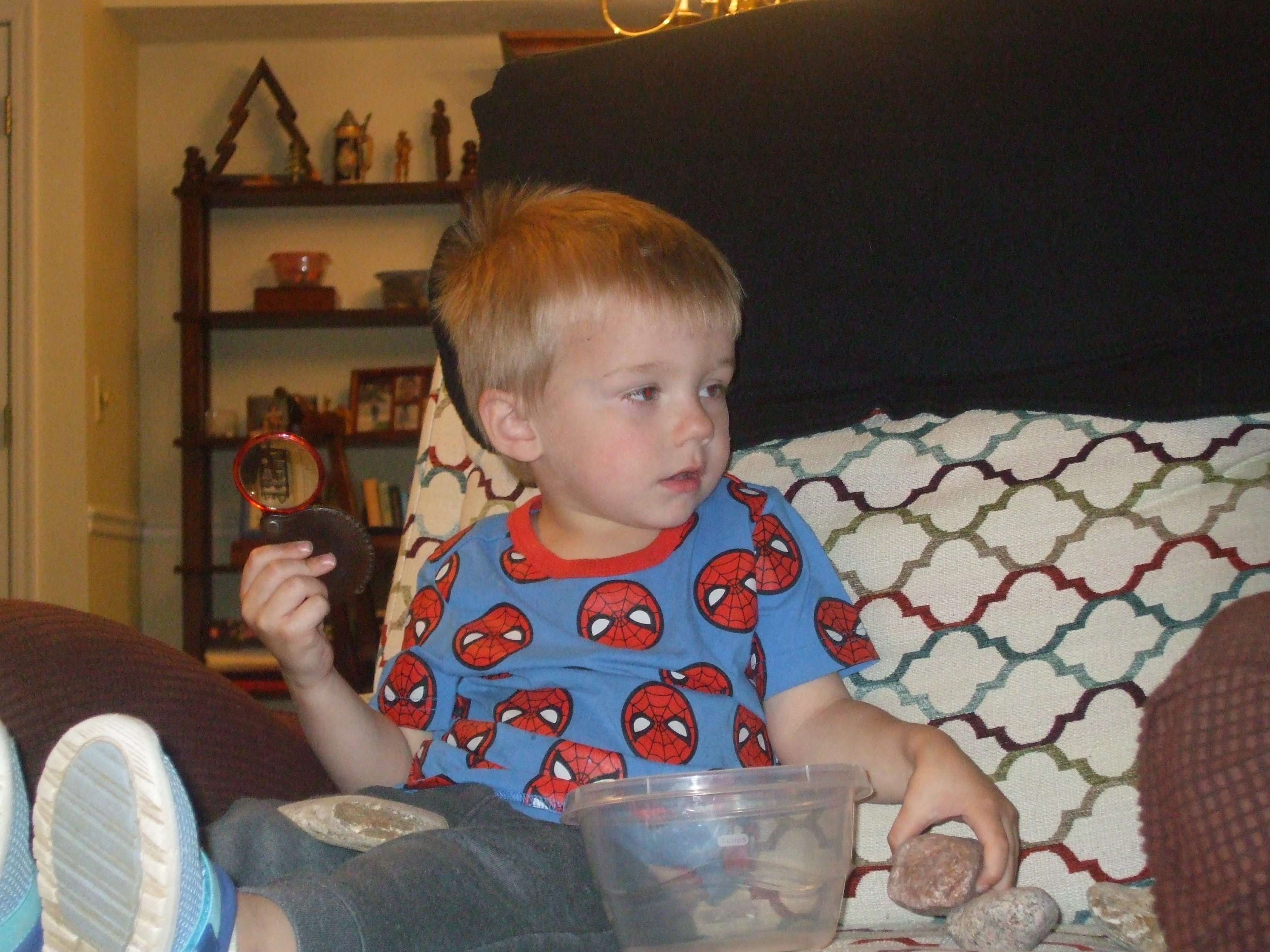 It is unlikely that his interest in rocks will last throughout his lifetime but it might. Maybe many years from now when I am gone he will remember the good time he had yesterday examining his collect with the special magnifying glass Uncle Paul gave him.