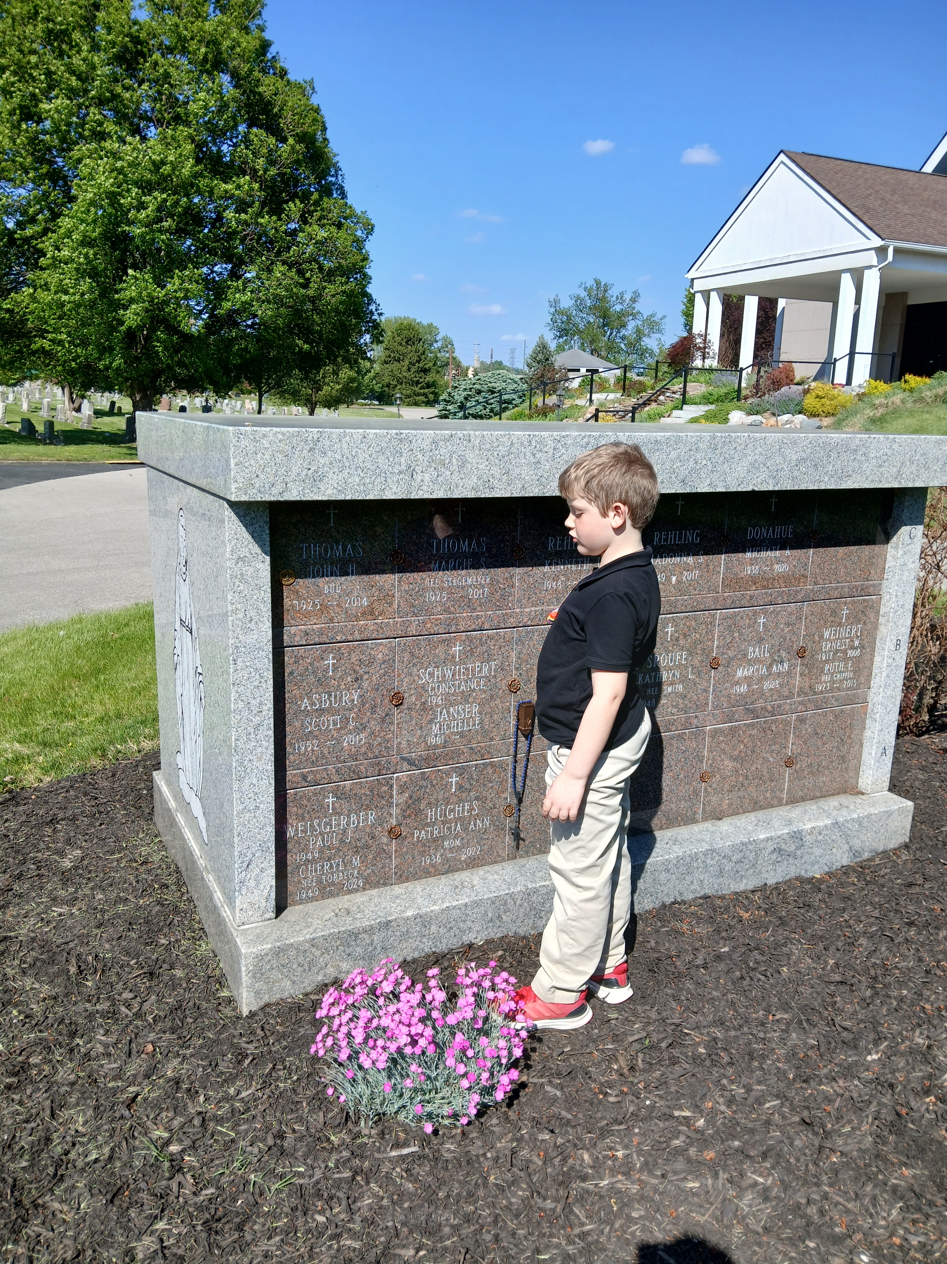 - April 22, 2026 – Wednesday – The anniversary of Cheryl’s death. Scott, Zachary and I went to visit Cheryl’s columbarium niche. Her flowers are in full bloom.