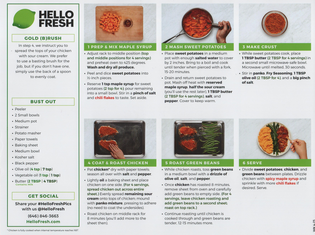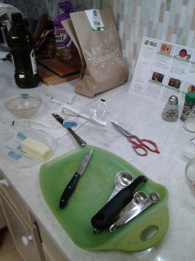 Perhaps roasted green beans will be abandoned for now. Before doing this Hello Fresh experiment, I had only tried roasting green beans once before after following a blog on Pocket or wherever about roasting vegetables. Most of the time I have been successful at roasting vegetables right from frozen. — even the no name brand veggies work well this way. Try broccoli and corn mixed together. Surprisingly good.