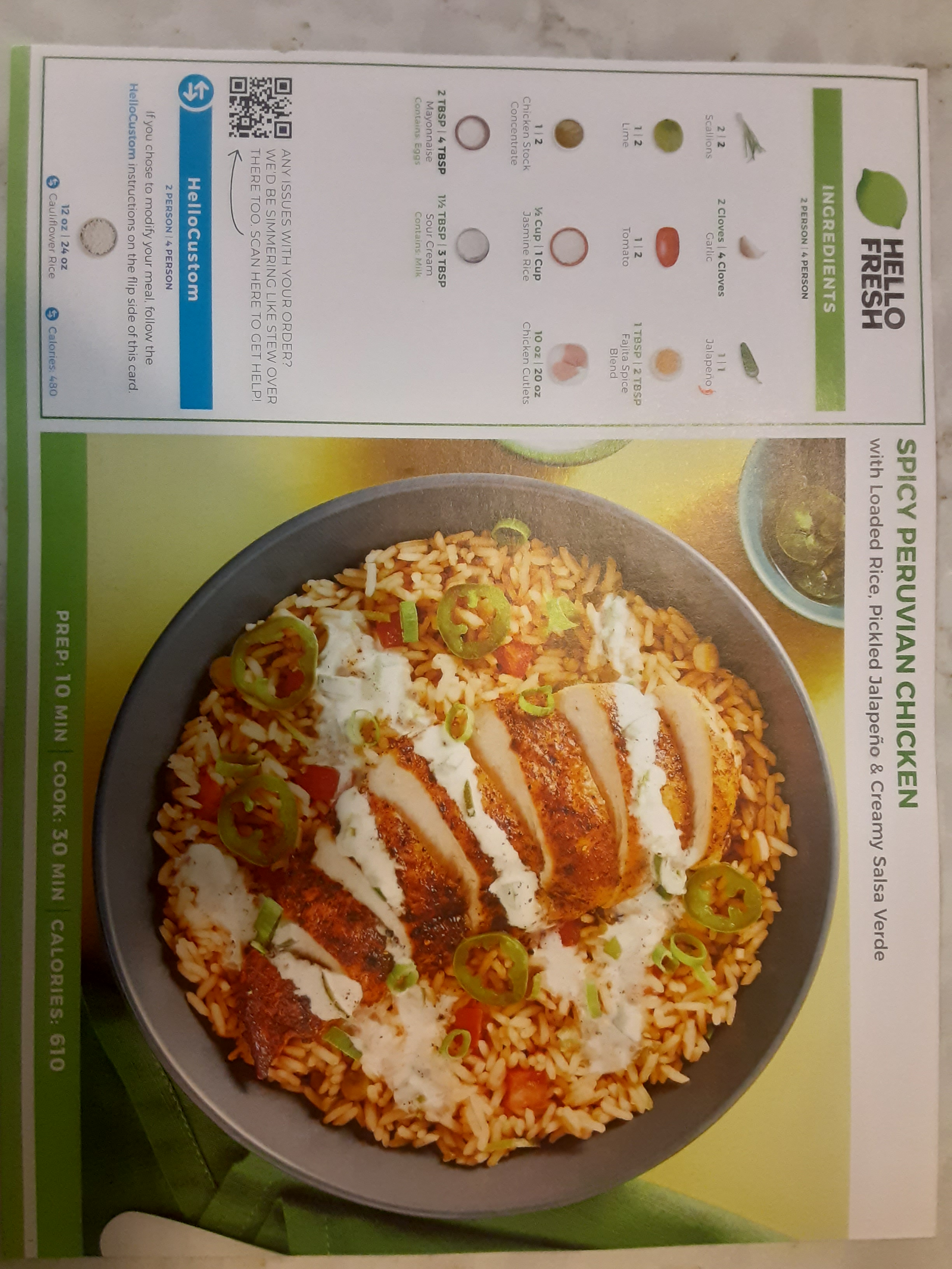 Today’s lunchtime activity was spicy Peruvian chicken from Hello Fresh.