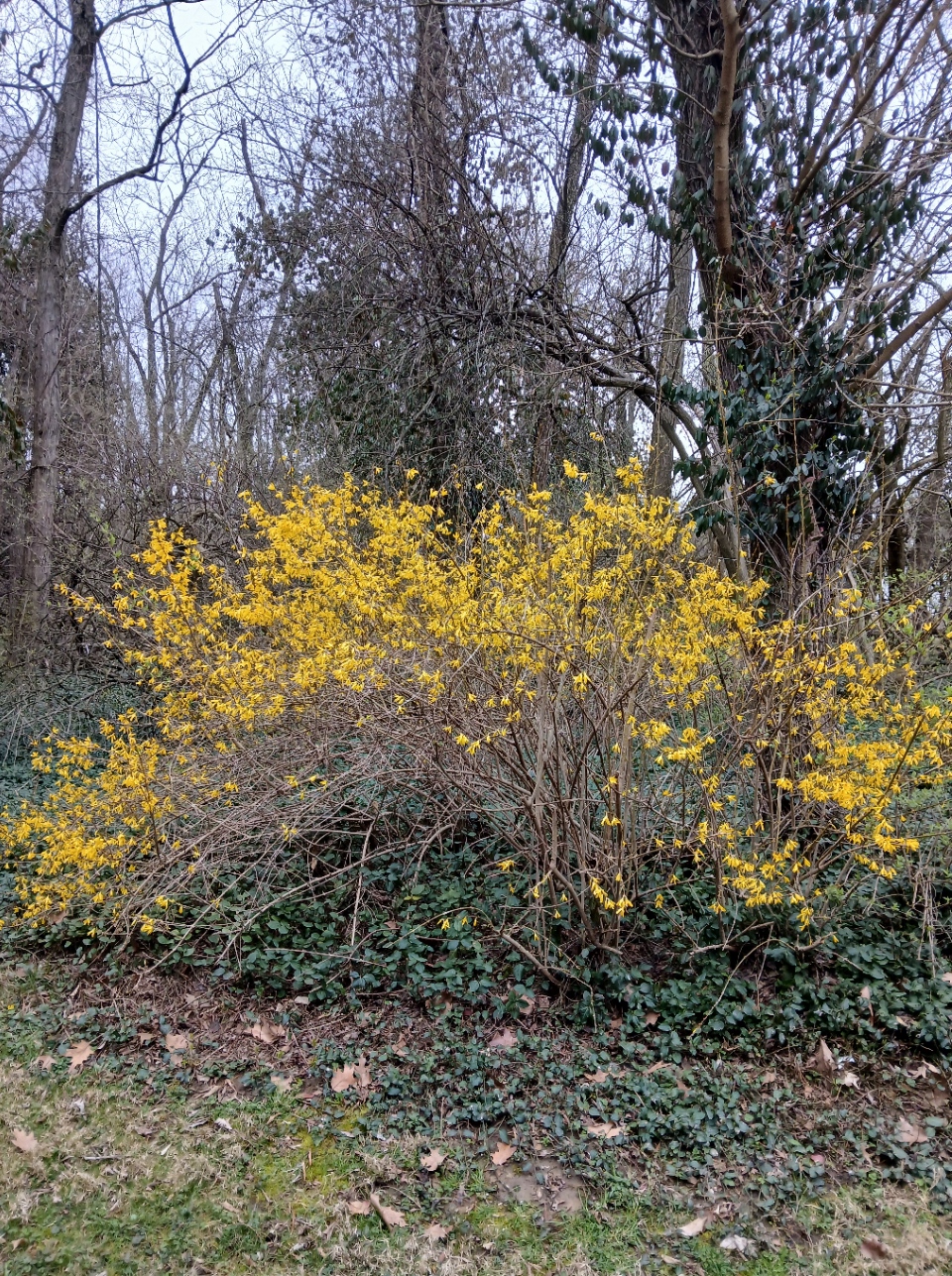 We humans have a propensity to modify, adjust and change the world to our own design. Why is that? Are we unable to accept nature in its natural form? I enjoy formal gardens as much as anyone but I also enjoy woods and flowering plants in their natural habitat. With Cheryl gone almost a year I am slowly and considerately adjusting my living space to me and my habitation of it. The view of this forsythia and its companion daffodil clump are very special to me. They shout, SPRING IS HERE. I can hear them.