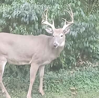 No deer seem to be coming by yet. Perhaps they have kept themselves in the deep woods for now? The picture here is of a deer I call Fred from last summer. I am pretty sure he was a fawn about four or five years ago. He is skittish. His sibling, a doe, is not. They kept the honeysuckle trimmed that spring and summer.