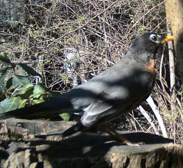 He is wearing his best late winter plumage. He is looking for a mate. His distinctness against the gray and white is fantastical. He whispers change is coming. He cheeps a little because there are no females in this woods. He is off again.